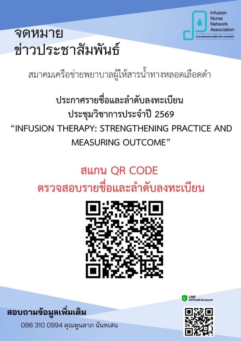 ข่าวประชาสัมพันธ์ 📣 สมาคมเครือข่ายพยาบาลผู้ให้สารน้ำทางหลอดเลือดดำขอเชิญเข้าร่วมประชุมวิชาการ ประจำปี 2569 “Infusion therapy: Strengthening practice and measuring outcome”03/09/202503/09/2025